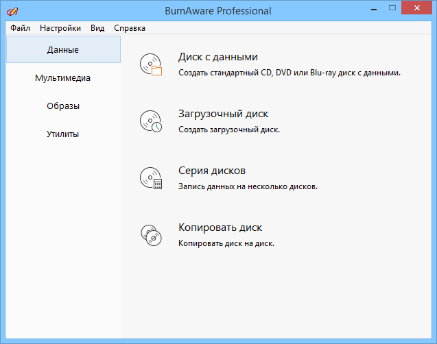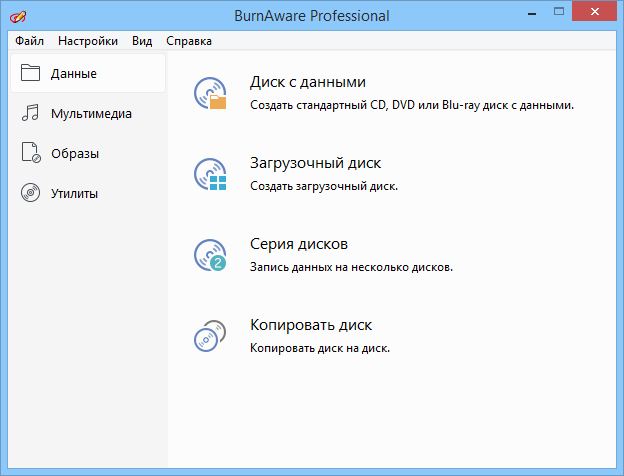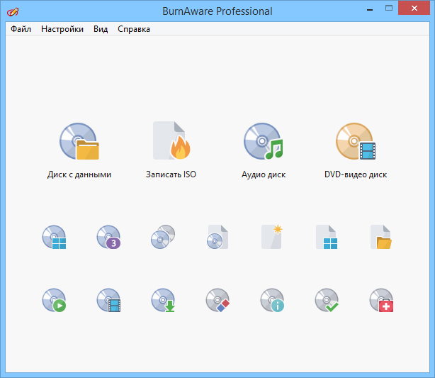 BurnAware Professional - компактная и простая в использовании программа для записи файлов на CD, DVD, Blu-Ray и HD-DVD диски. Поддерживает работу с любыми типами оптических дисков (включая CD-R/RW, DVD-R/RW, DVD+R/RW, BD-R/RE, HD-DVD-R/RW и DVD-RAM) и аппаратными устройствами записи. Есть возможность создания образов, записи мультисессионных дисков, проверки записанного содержимого.