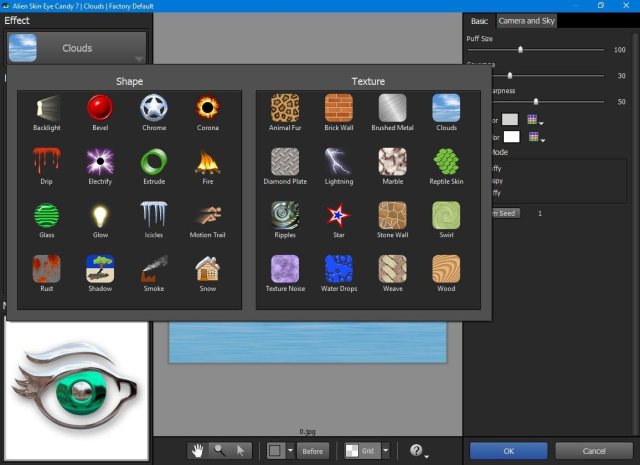 Eye Candy - один из самых лучших плагинов для Photoshop с многочисленными фильтрами и шаблонами для создания самых разнообразных природных эффектов за считанные минуты. Eye Candy состоит из 32 фильтров и более 1500 наборов различных заготовок для создания реалистичных эффектов создания огня, дыма, ржавчены, снега, льда и многого другого.