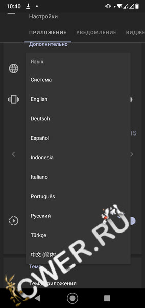 - виджет для быстрого переключения режимов настроек;