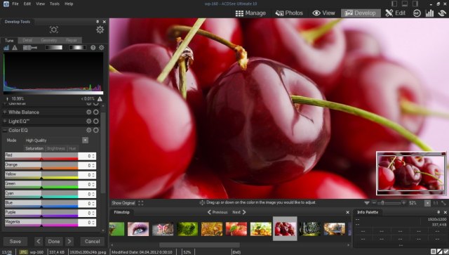 ACDSee Ultimate - программа для работы с фотографиями, обладающая расширенным набором функций и поддержкой более 100 графических форматов. Имеет поддержку слоев, прозрачности, позволяет работать с RAW-изображениями, содержит эффективный визуальный метод добавления к изображениям метатегов и быструю пакетную обработку большого количества картинок и многое другое.