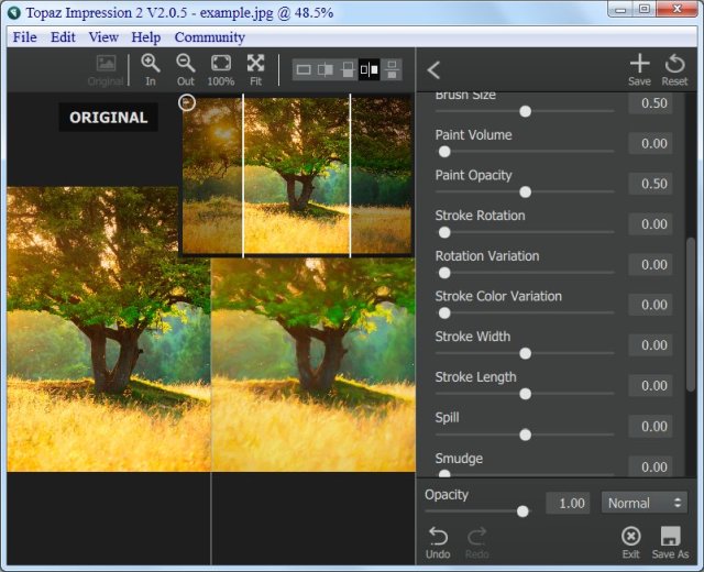 Искусство — это уникальное выражение индивидуального творчества, не простой визуальный стиль. И, хотя Impression имеет предварительно созданные эффекты, чтобы Вы начали работу, его конечной целью является то, чтобы помочь вам создать свои собственные шедевры. Попробуйте Impression на ваших собственных фотографий сейчас! - Использование автономно или плагином
