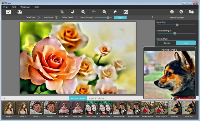 - Стиль Portrait Paint - создает портрет в классическом стиле с использованием оригинальных цветов из Вашего фото;