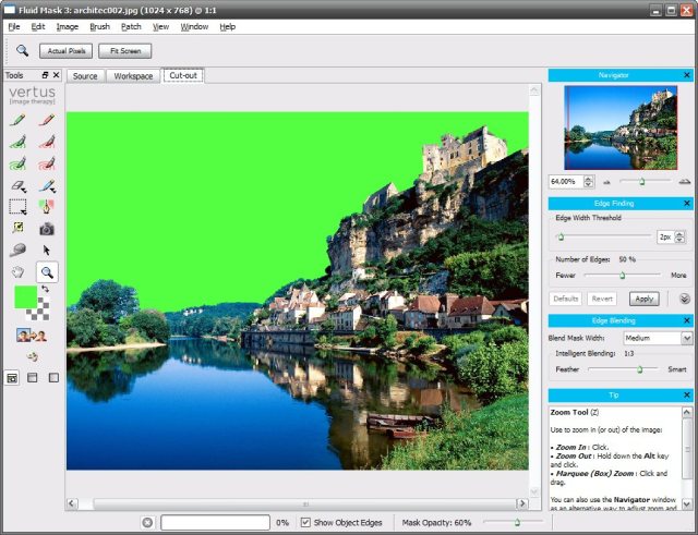 - Fluid Mask определяет контуры объектов по цвету и текстуре, учитывая также тени.