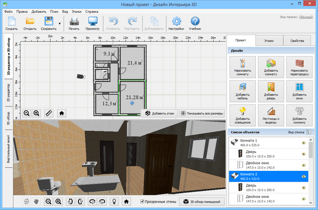 Хотите сделать перепланировку в своей квартире или офисе и тут же посмотреть, что из этого выйдет? Создать подробный план помещения в соответствии с его реальными размерами вам поможет программа «Дизайн Интерьера 3D».