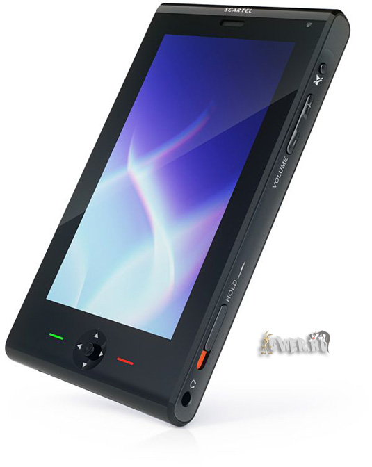 На сайте Артемия Лебедева появились изображения нового концептуального телефона под названием Scartel. В модели не может не угадываться влияние последних тенденций в дизайне: это минималистичная фронтальная часть, на которой расположены лишь огромный экран разрешением 850х480 пикселей, динамик, камера для видеотелефонии, сенсорные кнопки отмены и ответа на входящий вызов, а также пятипозиционный джойстик, и боковые панели, загруженные клавишами управления громкостью, рычажком блокировки, слотом для флэш-карт формата microSD и разъёмами синхронизации, A/V и наушников.