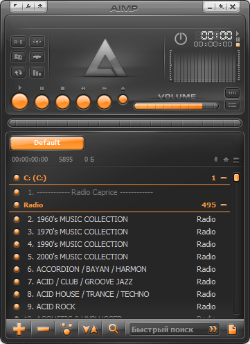 AIMP – проигрыватель, включающий в себя множество дополнительных модулей: CD-Ripper, Tag Editor, Audio-player, аудио конвертер, запись аудио и дисков с данными и т.д. Воспроизводит множество аудиоформатов, включая WAV, MP3, MP2, MP1, OGG, WMA, UMX, не нуждаясь в дополнительных кодеках. Имеет стильный многоязычный интерфейс.