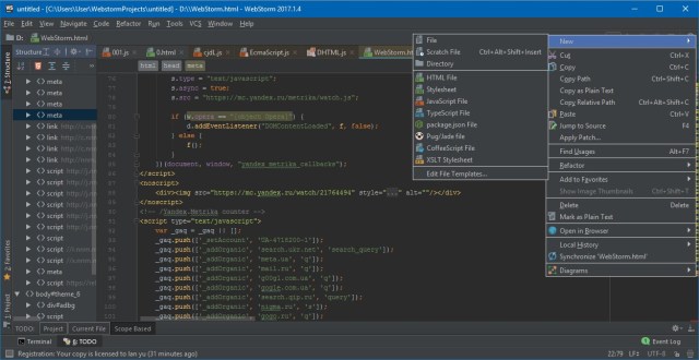 WebStorm - это удобный и умный редактор JаvaSсript, HTML и CSS, который также поддерживает языки, такие как TypeScript, CoffeeScript, Dart, Less, Sass и Stylus и фреймворки, например, Angular, React и Meteor. Программа дает возможность добавить разметку документов HTML или SQL элементов прямо в Jаvаsсript. С WebStorm можно осуществить синхронизацию и развертывание проектов через протокол FTP.