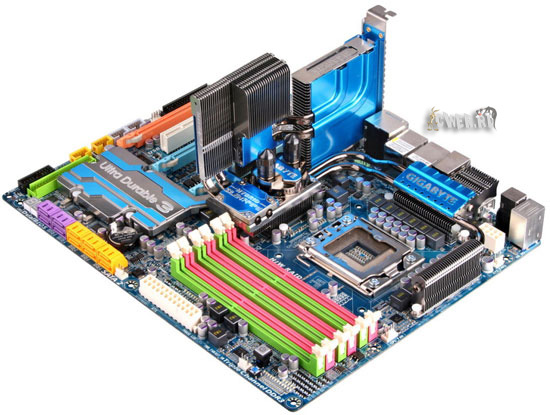 Как красноречиво свидетельствует надпись на радиаторе, отвечающем за понижение температуры южного моста ICH10R, данная платформа создана по новейшей фирменной технологии Ultra Durable 3, главной особенностью которой является принципиально новый подход к изготовлению печатных плат, при котором две унции меди используются для уровня электропитания и столько же для уровня заземления.