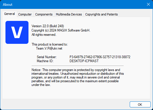 Скачать программу MAGIX Vegas Pro 23.0.302 (280,31 МБ):