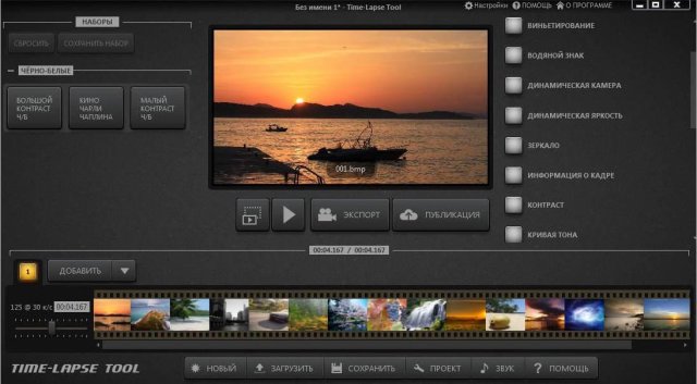 Time-Lapse Tool - программа с множеством эффектов для создания замедленного видео в HD или 4K разрешении из фотографий. Комбинируйте последовательность из тысяч изображений с различной частотой кадров, добавляйте приближение или движение в кадре и многие другие эффекты.