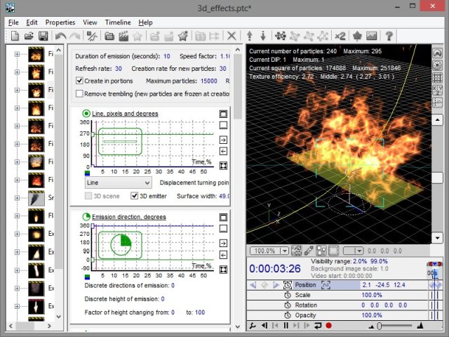 Magic Particles - программа для создания и редактирования визуальных спецэффектов, таких как горящий текст, дым, светящиеся частицы кружащие по заданной траектории, торнадо и многие другие. Полученные эффекты можно наложить в фотографии или видео. Также имеются возможности для создания фирменных скринсейверов, анимированных баннеров на сайт и т.д.