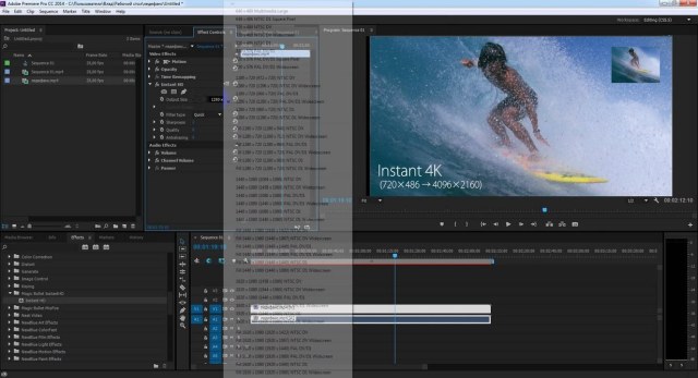 - Instant 4K - скоростное преобразование видео в различные форматы большого разрешения с выдающимися результатами. Программа использует интеллектуальные алгоритмы генерации новых пикселей, чтобы видео соответствовало размерам целевого разрешения, затем добавляет резкости и сглаживания, сохраняя детали изображения.