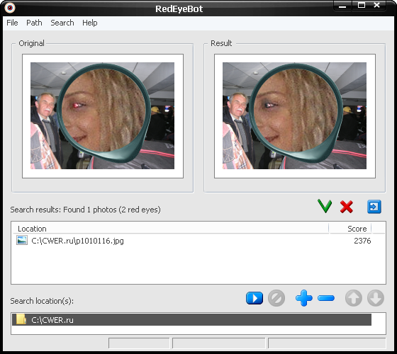RedEyeBot - программа, предназначенная для быстрого и эффективного удаления эффекта красных глаз на ваших фотографиях. У вас больше никогда не будет испорченных фотографий с эффектом красных глаз. Программа просканирует вашу коллекцию фотографий (или выбранную ее часть), обнаружит красные глаза и исправит их полностью в автоматическом режиме. Оригинал фотографии с красными глазами вам кажется более уместным и брутальным? Нет проблем, вы в любой момент можете отменить исправления сделанные программой и откатиться к оригиналу. Ручное исправление фотографий процесс долгий и трудоемкий. Каждую фотографию сделанную со вспышкой вам надо открыть в графическом редакторе, отредактировать и сохранить результат. С помощью данной утилиты вы больше никогда не будете заниматься этим нудным процессом. Исправление сотен фотографий займет совсем немного времени, всего-лишь считанные минуты.