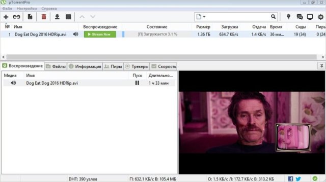 - Воспроизведение или предварительный просмотр торрент-файлов по мере их загрузки, не дожидаясь полной загрузки файла.