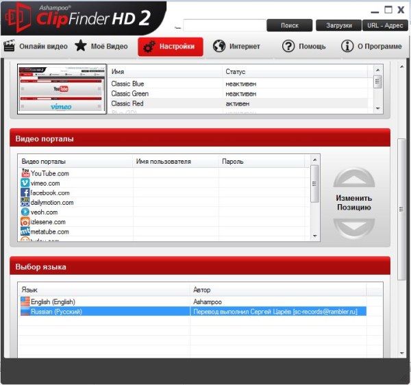 ClipFinder - программа, позволяющая искать и загружать ролики с популярных видео-порталов. Умеет работать с YouTube, MySpace, Google Video, VideU, MyVideo, ClipFish, sevenload, Dailymotion, Metacafe, Veoh, Livevideo.com, blip.tv, Yahoo! Video и IFILM. Главная особенность утилиты состоит в том, что поиск можно проводить одновременно по нескольким видео-порталам.