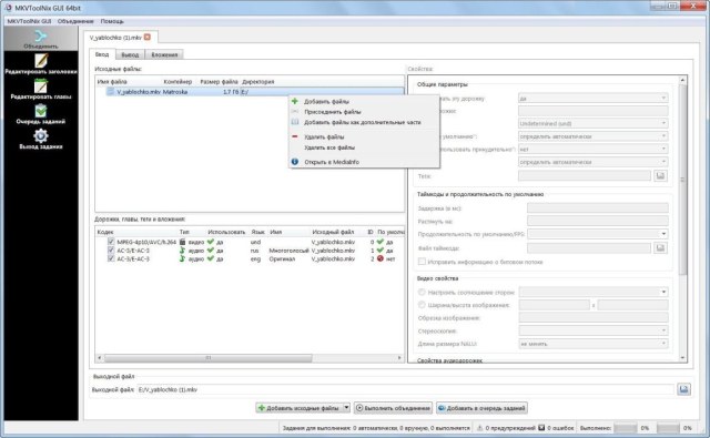 - MkvToolnix позволяет просматривать данные, соединять несколько потоков воедино или извлекать потоки.