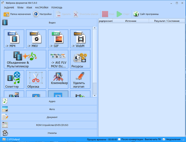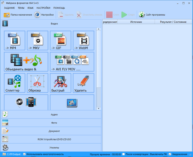 - Конвертирование всех популярных форматов видео, аудио и изображений