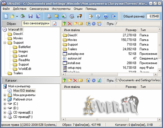 UltraISO - программа для работы с образами дисков в формате *.iso. Она позволяет редактировать содержимое CD-образа, извлекать и запускать имеющиеся на нем файлы. Программа делает ISO файл с CD-ROMа или жесткого диска. Ultra ISO работает не только с файлами в формате ISO, но и с образами, созданными в таких популярных программах, как Alcohol 120%, Nero, NTI CD/DVD Maker, Virtual CD, Clone Cd, BlindWrite и др. Ultra ISO может работать в паре с Nero Burning Rom и использовать движок этой программы для записи дисков.