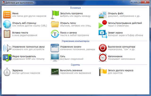 Программа, представляющая собой менеджер горячих клавиш. При помощи этого приложения можно назначать горячие клавиши на любые рутинные действия. Пользователи утилиты могут использовать горячие клавиши для вставки текста, запуска программ и файлов, регулирования громкости звука в динамиках, перехода на веб-сайты, управления медиаплеером и т.д. Программа позволяет настроить горячие клавиши для сворачивания и закрывания окон, подключения к интернету, перезагрузки компьютера и для любых других действий. Программа может даже записывать и воспроизводить перемещения курсора и клики мышки.