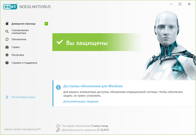ESET NOD32 гарантирует вашему компьютеру высокий уровень антивирусной безопасности. Простой и надежный вариант для базовой защиты ПК от вирусов, червей, троянских программ, шпионского, рекламного и потенциально опасного ПО, руткитов и фишинг-атак.