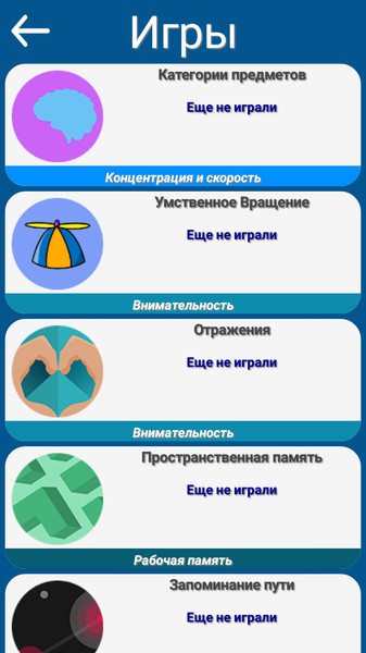 Mind Games — это собрание удивительных развивающих игр, разработанных с учетом принципов когнитивной психологии и направленных на развитие ваших умственных способностей. В приложение входит более 30 обучающих игр. Во всех играх ведется учет ваших успехов, с цифрами и графиками. На странице списка игр приводятся ваши лучшие результаты за все время и за текущий день. Все показатели оцениваются по общей шкале, и вы легко сможете увидеть, над какими именно навыками вам нужно работать. Тренируйте концентрацию, скорость реакции, память, гибкость мышления и общие знания.