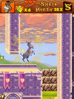- Платформер с 4 персонажами: Шреком, Ослом, Котом и Пряничным человечком.