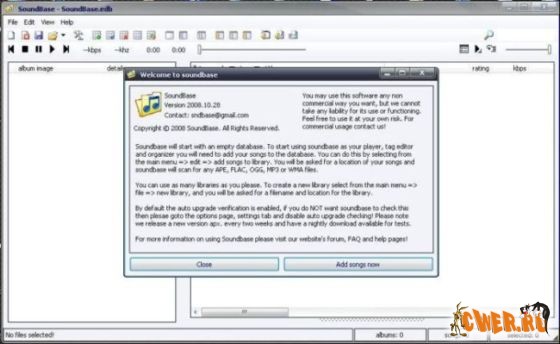 Soundbase - мультимедийный плеер, обладающий возможностью редактирования тегов и организации музыкальной коллекции. Soundbase поддерживает воспроизведение широкого разнообразия форматов, включая MPEG Audio Layer-3 (MP3), OGG Vorbis (OGG), Monkey Audio (APE) и FLAC.