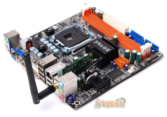 Пресс-служба компании Zotac объявила о выпуске новой материнской платы в форм-факторе Mini-ITX, которая изначально оборудована встроенным модулем для возможности подключения к беспроводным сетям Wi-Fi 802.11b/g.