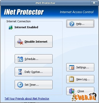 Blumentals iNet Protector - утилита, которая защищает паролем ваше интернет-соединение. Для того чтобы соединиться с сетью, вам будет необходимо ввести определенное кодовое слово, заданное до этого в данной программе.