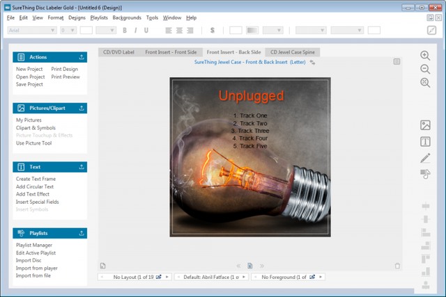SureThing Disk Labeler — это профессиональная программа, позволяющая создавать высококачественные обложки для записанных CD или DVD дисков. При сравнении этой программы с похожими продуктами, разница видится просто огромной. Это все равно что, например, сравнивать Photoshop и Paint. Да, Disk Labeler — это практически профессиональная среда для разработки и вывода на печать, наклеек и обложек CD/DVD дисков! В программе имеется множество встроенных шаблонов и материалов оформления.