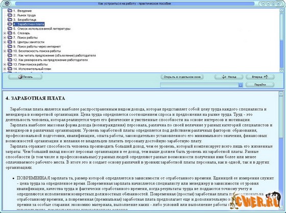 Особенно ценно то, что пособие позволяет практиковаться: в составлении резюме и мини-резюме, исполнительных планов поиска и выбора новых условий работы; в определении портрета организации, где Вы предполагаете работать; в прохождении наиболее распространенных тестов при приеме на работу (с оценкой и объяснением результата!); во внимательном прочтении объявления работодателя; в возможности архивировать все используемые данные и полученные результаты; в проведении сравнений и выборе наиболее оптимальных вариантов Ваших конкретных действий, исходя из реально меняющейся ситуации с учетом фактора личной безопасности.