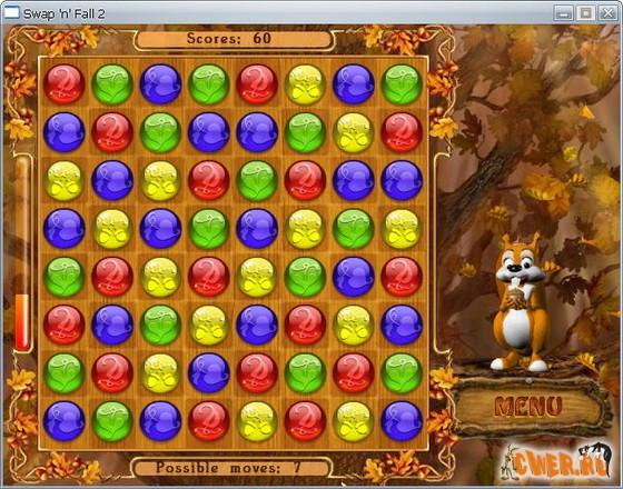 Насладитесь новым оригинальным вариантом классической комбинационной игры “выстрой 3 в ряд”, с графикой в осенних цветах! В процессе игры вы будете слушать расслабляющую музыку, наслаждаясь приглушенными цветами и погрузившись в атмосферу спокойствия. Составляйте комбинации из 3-х, подходящих по цвету шаров, в горизонтальные или вертикальные линии! При удачном совпадении шаров они красиво исчезнут, а на их месте появится следующая группа, жаждущая перемен. За каждое совпадение вам начисляются очки, и температура градусника повышается, указывая вам на то, что вас ждет следующий уровень. А изюминкой игры является возможность менять местами 2 или 4 шарика одновременно.