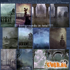 10 готических фонов (300 dpi, 3600x3000 пик), 12 готических сцен на основе фонов, и бонус - 7 файлов в PNG формате с элементами готики, для воплощения Ваших фантазий