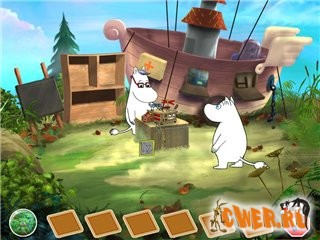 В далекой сказочной стране под ласковым солнцем лежит прекрасная долина. Там обитают славные существа, похожие на белых бегемотиков, – доброе и мудрое семейство Муми-троллей. У них есть соседи – мюмлы, хемули, снорки, сниффы и еще множество забавных созданий. Все они отлично ладят и дружат домами. Но однажды покой Муми-дола был нарушен… Что это за странный звук?! Как будто за морем завыл кто-то огромный. Вой эхом раскатывался по всей долине и был настолько громок и ужасен, что никто не мог уснуть. Отправиться и разузнать, что случилось, решил отважный Муми-тролль. Он собрался было лететь за море на воздушном корабле Снорка, но вот незадача: у корабля не хватает деталей – их разбросало недавним ураганом. Собирая по долине части корабля, Муми-тролль выиграет у Крошки Мю турнир по морскому бою, поможет Хемулю вырастить садик, разгадает каверзные загадки Вонючки и даже побывает в пещере с привидениями! И это далеко не все! Муми-тролль не был бы Муми-троллем – находчивым, ловким и смышленым – если бы не довел дело до конца. И как же он удивится, когда наконец найдет причину загадочного эха! Неважно, сколько вам лет: игра по мотивам сказок финской писательницы Туве Янссон, очарует и малышей, и взрослых. Приготовьтесь не только напрячь память и внимание (на самом сложном уровне придется нелегко не только ребятишкам!), но и улыбнуться – теплый скандинавский юмор понравится всем без исключения! Игра предназначена для детей от 4 лет.