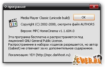Скачать Media Player Classic Homecinema 1.1.604 EN+русификатор (3,97 МБ):