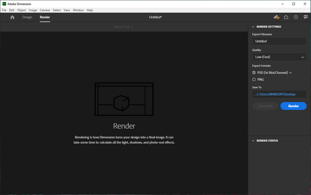 Программное обеспечение Adobe Dimension CC упрощает создание 2D- и 3D-ресурсов для рекламных постеров, визуализации сцен и абстрактных художественных произведений в реалистичной среде. Программное обеспечение Adobe Dimension CC позволяет просто перетаскивать графику или логотипы на модель и настраивать материалы по своему вкусу. Поддерживается экспорт в Photoshop, при этом можно редактировать любой слой и даже изменять освещение в модели или шаблоне.
