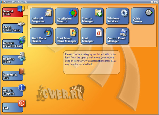 Advanced Uninstaller PRO - утилита для корректного и полного удаления программ с множеством дополнительных возможностей. Имеется Startup Manager, модуль управления программами, автоматически запускаемыми при загрузке системы, а также отображающий детальную информацию по каждой записи. Присутствует чистильщик реестра, оптимизатор системных ресурсов, дефрагментатор, модуль создания резервных копий и т.д. Также данная программа позволяет чистить кукисы, историю переходов и записи более, чем ста программ. Монитор инсталляций отслеживает изменения в системе и позволяет полностью «откатить» изменения, сделанные установленной программой. Имеется средство для оптимизации работы компьютера, путём грамотного управления запущенными сервисами.