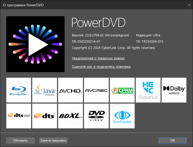 Скачать программу CyberLink PowerDVD Ultra 24.0.1105.62 (395,59 МБ):