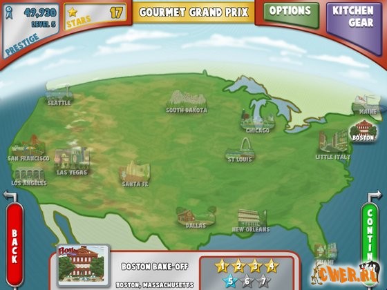 Встречайте продолжение многим полюбившейся кулинарной тайм-менеджмент игры. Путешествуйте по старым добрым городам США и узнавайте особые рецепты для отдельного региона. Впечатляйте критиков свежестью и глубиной ваших кулинарных познаний.