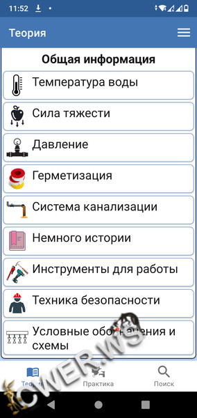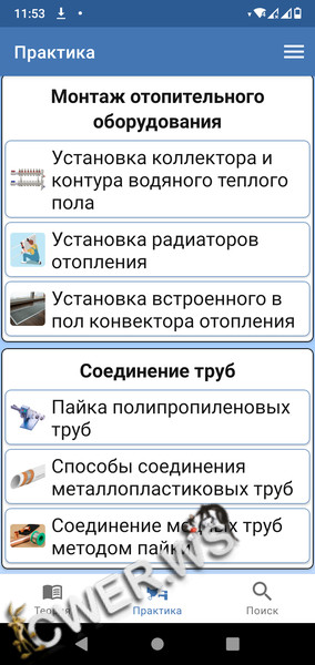 Приложение содержит различные статьи и советы для всех тех, кто работает в сфере сантехники. В приложении присутствуют 2 категории: "Теория" и "Практика". Расскажем об отоплении дома, сантехническом оборудовании, водоснабжении. Затронем основные схемы подключения. Покажем как производить установку, ремонт и соединение труб.