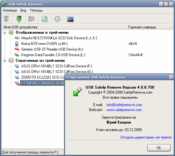 USB Safely Remove - это удобная и надежная замена стандартного Безопасного извлечения устройств. Программа содержит массу функций для комфортной и приятной работы с hotplug устройствами (USB, SATA, FireWire).