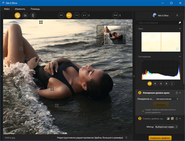- Сохранение и регулировка резкости деталей в изображениях без выделения шумов и других артефактов