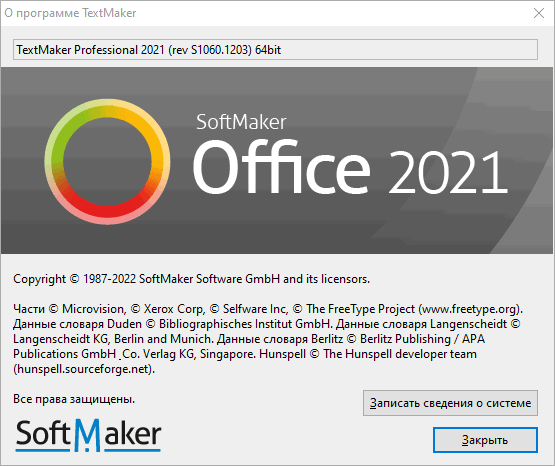 Скачать программу SoftMaker Office Professional 2024 Rev S1228.0906 x64 (395,9 МБ):