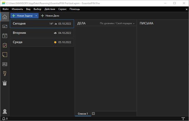 EssentialPIM - это менеджер персональной информации, который позволяет собирать и хранить различные данные в удобном, электронном виде. Все ваши задачи, дела, заметки, контакты, почта и пароли хранятся в графическом и легко доступном виде. Это доступная замена MS Outlook, также обладающая беспрецедентными возможностями синхронизации с облачными сервисами (Google, iCloud, Toodledo, SyncML, CalDAV, и тд.).