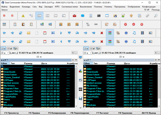 Total Commander Ultima Prime - это набор утилит и разнообразных наборов настроек, собранных в один установочный пакет для расширения функциональности файлового менеджера Total Commander. Пакет состоит из расширенных главного меню и панели инструментов, очень полезных дополнительных программ и плагинов, изменённой раскладки горячих клавиш и многого-многого другого.