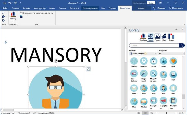 Надстройка Power-user - интеллектуальные инструменты для PowerPoint, Excel и Word - шаблоны, значки, диаграммы, карты и многое другое! Power-user предоставляет вам обширную библиотеку шаблонов, значков, диаграмм, карт для ваших электронных таблиц и презентаций. Используя Power-user для PowerPoint и Excel, вы привлечете внимание своей аудитории потрясающей графикой, которая наверняка впечатлит.