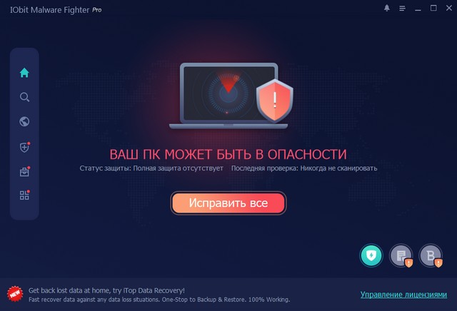 Основные компоненты IObit Malware Fighter: