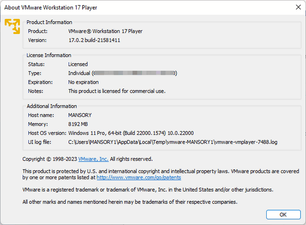 VMware Workstation Player 17.5.1 Build 23298084 Commercial