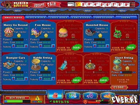County Fair сочетает в себе два типа игры - тайм-менеджмент и стратегию. Сумейте позаботиться о развитии своего ярмарочного бизнеса. Украшайте ярмарку аттракционами, игровыми стендами и различными достопримечательностями. Продавайте посетителям различные деликатесы, нанимайте рабочий персонал. Также вам придется правильно распределять прибыль и заказывать рекламу для того, чтобы увеличить количество посетителей.