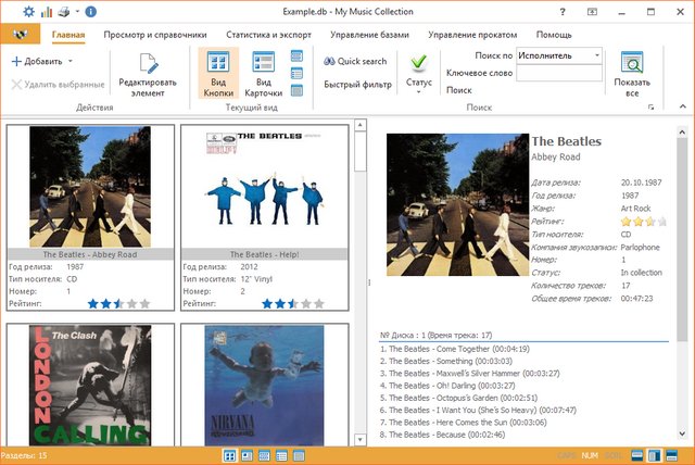 My Music Collection - программное обеспечение предназначенное для организации и управления музыкальными коллекциями любого рода, в том числе компакт-диски, MP3-файлы или виниловые пластинки. Данный музыкальный органайзер позволяет создать CD базу данных и просмотреть его содержимое, даже если диск лежит на полке или в настоящее время позаимствован вашим другом. Теперь Вы можете забыть о создании музыкальной базы данных на бумаге, в Excel или в текстовых файлов.
